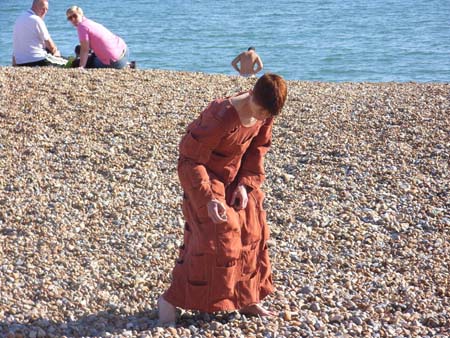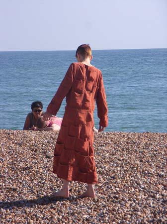Site-specific durational performance, an exploration of memory stored in the body. Walking over the beach, I collect stones in the many pockets of my dress, gradually increasing the weight until I can no longer walk.