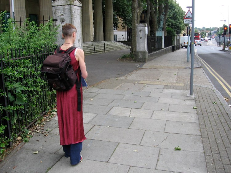 Eight-hour durational performance. I laid a line of blue yarn along a route linking places historically connected with water in Camberwell, London (the former bathhouse, the filled-in canal, the ancient healing well). I retraced my steps, knitting up the yarn and collecting found objects and stories along the way.